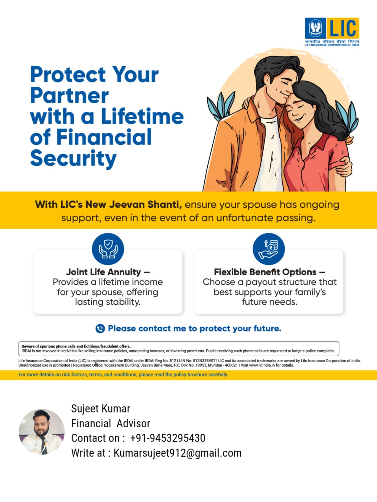 Welcome to Sujeet Kumar – LIC & Finance Expert! I am an experienced LIC agent and financial advisor, here to help you make smart financial decisions. On this channel, you’ll find expert guidance on LIC policies, insurance plans, investments, tax-saving tips, and financial planning..